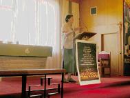 接着学员们以自己修炼前后身体的变化为例说明法轮功祛病健身的神奇功效;并向与会者演示了功法,整个介绍会气氛融洽祥和。学员们还回答了大家的许多问题。大多数人索取了真相资料:“历史的见证”和“简报”。许多在场的人对功法本身表现了极大兴趣,有的还想在教堂开始集体炼功。