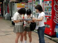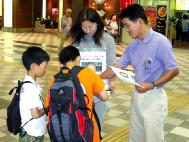 | 学员在征集签名 | 学员在向日本民众讲真象 |