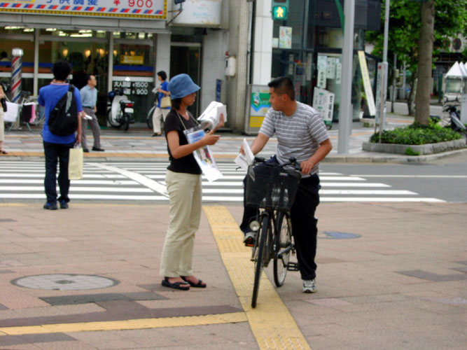 签名活动开始后,“岐阜新闻”报社的记者便赶来作了采访。接受采访的学员首先全面地向记者介绍了法轮功以及法轮功在中国大陆所受到的惨无人道的迫害,然后介绍了金子容子被非法关押的详细经过,最后向记者介绍了法轮功在海外的现状及国际社会对法轮功的支持,特别介绍了江××在美国受到起诉的情况。记者听了介绍后,对法轮功在中国大陆受到的迫害情况颇为动容。第二天一大早,这位记者的报导便见报了。(另见其他报导)
