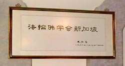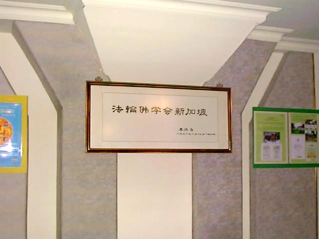 1996年7月,新加坡的法轮功学员申请注册了法轮佛学会(新加坡)合法社团,这大大促进了日后学员们的修炼和交流活动。在成立仪式上,尊敬的师父亲临大会并做了即席演讲。特别值得一提的是,师父为学会亲笔题词:“法轮佛学会新加坡”。这是师父的亲切关怀和鼓励,师父就在我们身边!
