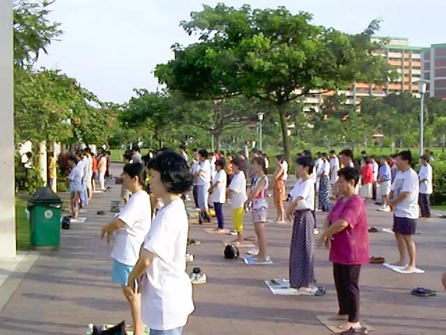 2002年8月,在新加坡展览中心,学员们自99年720以后第一次走上舞台面对数以千计的公众演示功法,法轮大法的炼功音乐在大厅响彻,真善忍的光芒沐浴着渴望真相的众生。