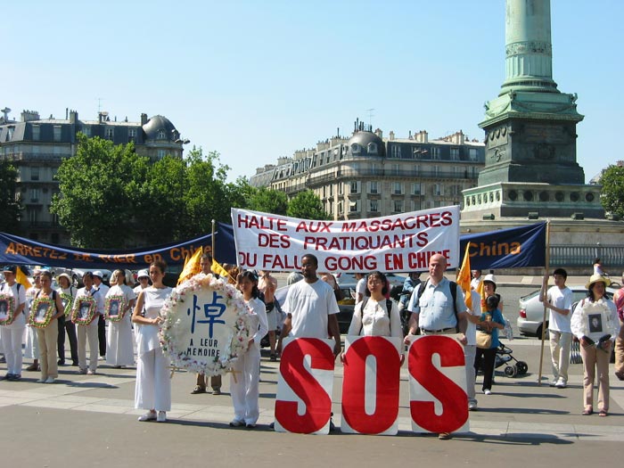 图片报导:7.20之际法国法轮功学员游行讲真象 揭露谎言与迫害