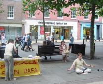 派发大法材料的过程中,我们也遇到了一些中国人,他们有的来到我们展位前,主动索取真相材料,有的在附近遇到学员,但学员手里已经没有中文真相, 他们都耐心等候直到学员取回中文真相小册子,此时他们的脸上荡漾出喜悦的微笑。一对中国夫妇起初犹豫不决,不敢接真相材料,一位老年学员坦诚地向他们说:“请记住法轮大法好,我不会骗你们的,相信我吧。”这对夫妇被学员的坦诚和善意打动,欣然接受了真相材料。