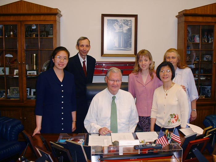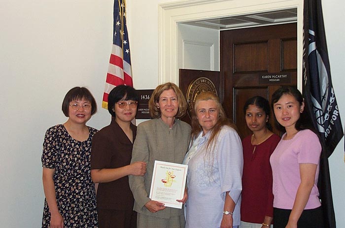 【明慧网2003年7月26日】7月21-22日华盛顿DC法会期间,密苏里州大法弟子拜访了本州在国会参众两院的全部议员,向他们介绍了法轮功在海外洪传的近况。议员凯蕊.莫卡希(Karen McCarthy)和艾克.斯凯尔顿(Ike Skelton)分别亲自会见了大法弟子,并表达了他们对中国目前这场残酷镇压的深切关注。