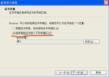 重新安装系统后,需要把密钥导入系统。具体步骤是:先运行IE浏览器→打开“工具”项→选“Internet选项”→点“内容”项→进入“证书”→在“个人”项中点“导入”→点“下一步”→在“浏览”项中找出你所存放该密钥证书的存放位置和密钥证书的文件名→点“下一步”→输入你的密码后点“下一步”→点“将所有的证书放入下列存储区”,再到“浏览”中选择“个人”项并确定见图2→点“下一步”→点“完成”,即可完成密钥的导入工作。