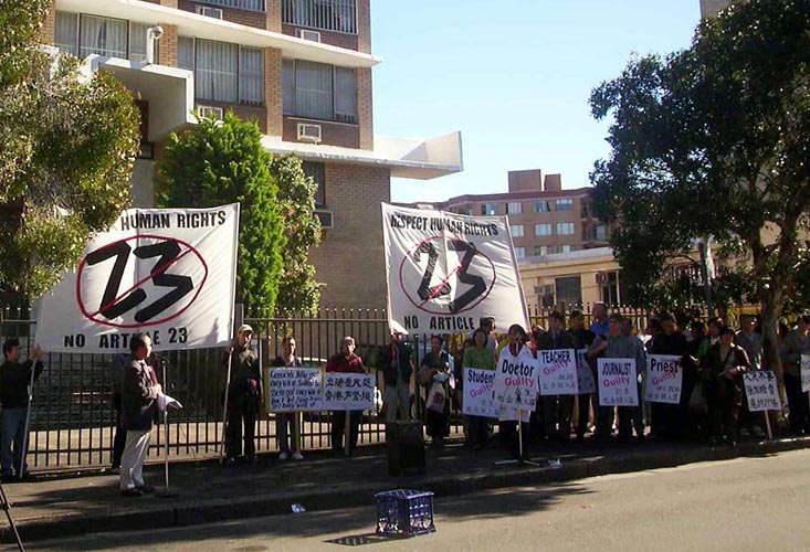 “23条对中国大陆的老百姓来讲并不陌生,他们直到今天也是生活在23条之下。这23条也就是中共宪法中的四个坚持中的一条——坚持无产阶级专政的衍生物。对生活在香港99年的民主自由的人民来说,是一个非常沉重的枷锁。所以无论是中国的13亿人还是香港的6百万人都应该起来反对23条。”
