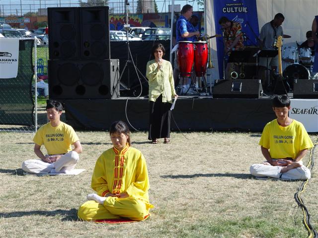 七月二十五、二十七两天,西雅图地区晴空万里、艳阳高照。当地居民们以欢快的心情载歌载舞庆祝传统的民间节日“海洋节”。在海洋节中心社区表演舞台上,西雅图法轮大法弟子演示了舒缓优美的五套功法,自己创编的莲花舞和唐装表演,将大法的祥和与美好和中华修炼文化的悠远绵长展现在西人观众眼前。多姿多彩的文艺表演令社区居民耳目一新,并赢来阵阵掌声。随着正法洪势渐渐接触最表面空间,相信越来越多的世人会认识到大法的救度众生的深刻内涵而陆续走入大法。
