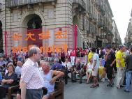 图片报道:意大利法轮功学员7.20中使馆前静坐抗议迫害