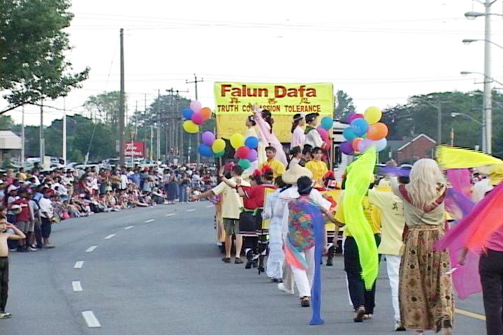 【明慧网2003年7月4日】为庆祝加拿大136周年国庆,多伦多市有一系列的庆祝活动,其中多伦多学员参加了东约克和士嘉堡的两次大游行。其中由康乐部与士嘉堡镜报联合主办的有60多团体参与的国庆大游行尤为引人注目。