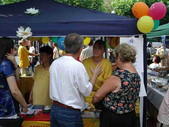 在这次活动中,我们接触到了很多人。我们在圣保罗教堂旁设了信息台,人们可以从那里了解到有关法轮功的更详细的情况、学员的修炼体会和炼功点的地点等信息。越来越多的人们清楚地了解到了对法轮功学员的这场无理镇压,并对此加以谴责。