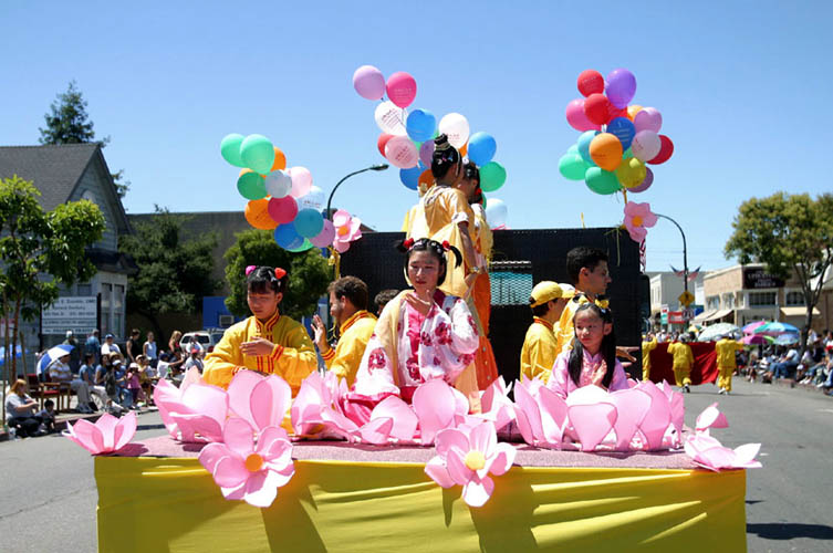 去年的国庆节,法轮功学员组成了浩大的队伍参加了红木城的游行。与去年不同的是,今年学员们同时参加三个城市的庆祝活动,阿拉米达(Alameda)、红木城(Redwood City)和苗必达(Milpitas),将法轮大法的美好带给了更多的人们。