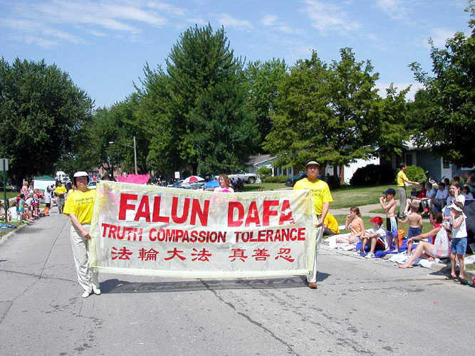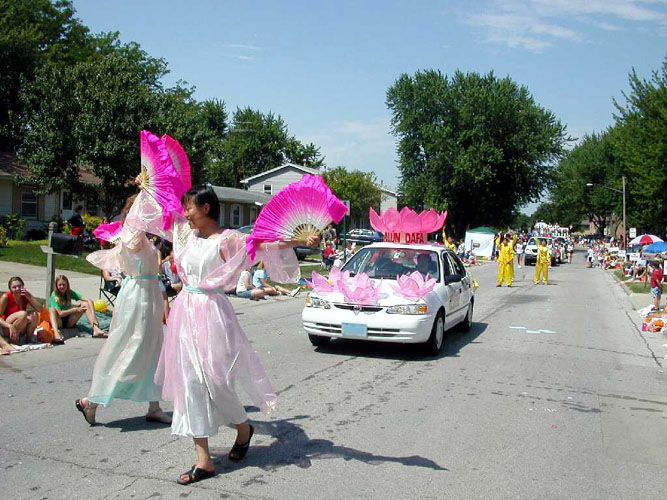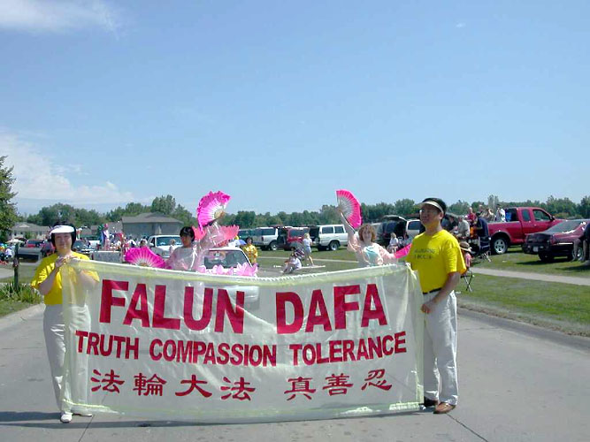 法轮功参加爱荷华州科罗维尔国庆游行(图)