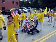德州丹顿市独立日游行法轮功黄色队列令人瞩目(图)