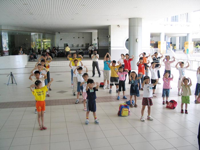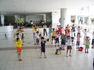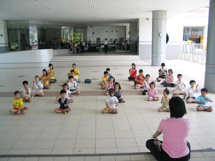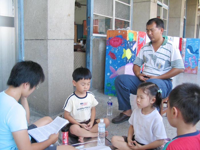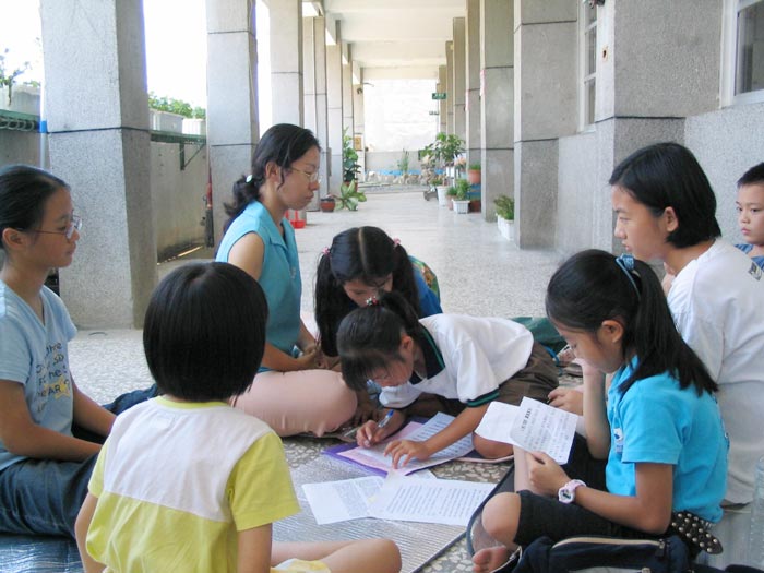 7月5日明慧学校举行校外洪法讲真相,参观台南市「福尔摩沙」照片展,参展时大法小弟子的良好表现,让导览人员深深感受到大法小弟子的不同。参展结束时正好巧遇吕副总统莅临,人潮众多,小弟子并在现场展示功法传达大法之美好。(见图五、六)