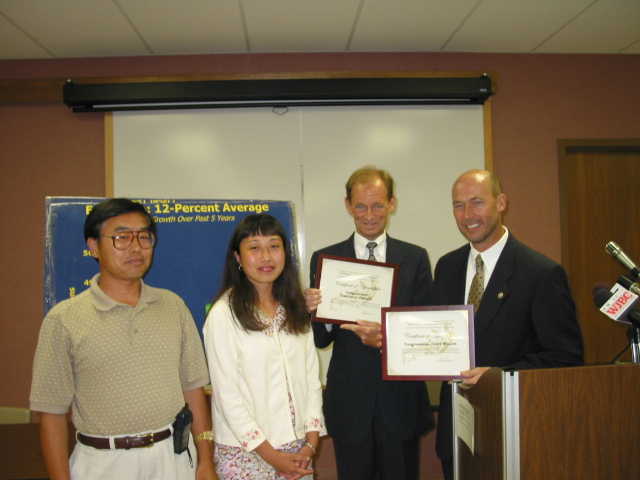 两位议员的简短演说后给民众提问的机会。伊州弟子首先向两位联邦议员在过去对大法的支持表示感谢,然后对进一步营救李祥春医生及反对这场对法轮功学员信仰与人权的的事宜向议员提问。对于中国江氏集团对法轮功的迫害,这种践踏人类人权与信仰的行径,两位议员都表示了极大的愤慨并表示有责任维护人类人权与信仰的自由。对营救李祥春医生他们表示将进一步提供帮助。
