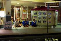 7月20日,星期日,我们举行了昆省北部第一次烛光悼念活动用以纪念在中国遭受迫害的学员。活动在马凯一条主要街道长廊入口处举行。从晚上6点到8点,我们每半个小时发一次正念,并穿插着做了功法演示。有好些人接受了我们的小册子,观看了照片。有几个人还停下来讨论了一下中国的形势。这是马凯当地学员第一次参与这样的活动。