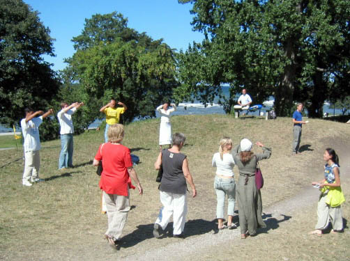 学员们祥和的功法,吸引了前来参加“多途径博览会”的两位女士。她们主动要介绍我们参加在周末举行的博览会,并协助找到博览会的主持者。当主持者闻听了法轮大法的真相后,无偿邀请法轮功学员参加博览会。并在会上定时向与会者展示功法,介绍法轮功。