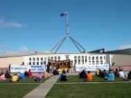 【明慧网2003年8月16日】星期四(8月14日),澳洲大法弟子在国会大厦前举行了新闻发布会,希望澳洲总理在访问中国时向中国的领导人提出法轮功问题。