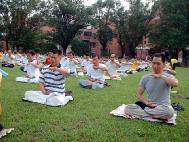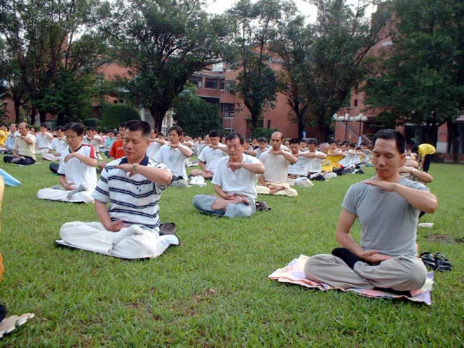 16日当天下午,百多名小朋友在经国厅右方空地打坐炼功时,吸引了其他社会人士的目光。许多人看着小朋友炼功的模样,彼此交头接耳,讨论了起来,表情充满了好奇与赞赏。这也是一次非常成功的洪法。