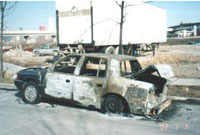 | 原告之一的汽车被蓄意纵火 | 原告之一的汽车车窗被蓄意砸坏 |