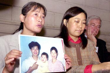 ![]() 20日法轮功学员戴志珍、史玉红和律师George-Henri Beauthier(从左至右) 提交诉讼后,在比利时布鲁塞尔召开新闻发布会。(法新社) |