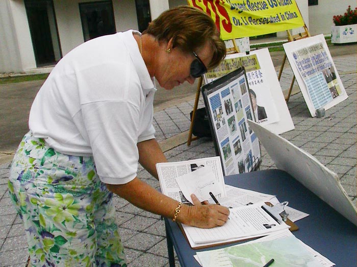 德州的“营救李祥春汽车之旅”今天(8月20日)到达了佛罗里达州的帕萨蔻拉(Pensacola),该市的电视台WEARabc3的记者赶来采访,摄影师认真地拍摄学员的展版的学员炼功的场面,学员们向记者介绍了查尔斯-李被中国无理关押的情况,以及他为什么要回中国的原因:因为他想揭露这场对法轮功的迫害,揭露那些谎言,因为在中国所有的媒体都是被江××所控制,老百姓根本就不知道真实的情况。这场迫害完全是建立在谎言基础上的,当善良的人们知道了江××在残酷地迫害无辜善良的人们,并迫害死了那么些人,那么多的家庭破碎,会非常的震惊和气愤,会站起来制止这残酷的迫害的,这样就会使更多人免于遭受同样的迫害。路边一位过路人听了问他们能做一些什么,记者也问美国人们和政府能帮什么忙?学员说请善良的人们签名支持营救查尔斯-李回来,希望美国政府加大力度营救她的公民回来。发布会之后,学员还访问了市政府市长办公室和当地的家报纸的编辑和记者。