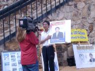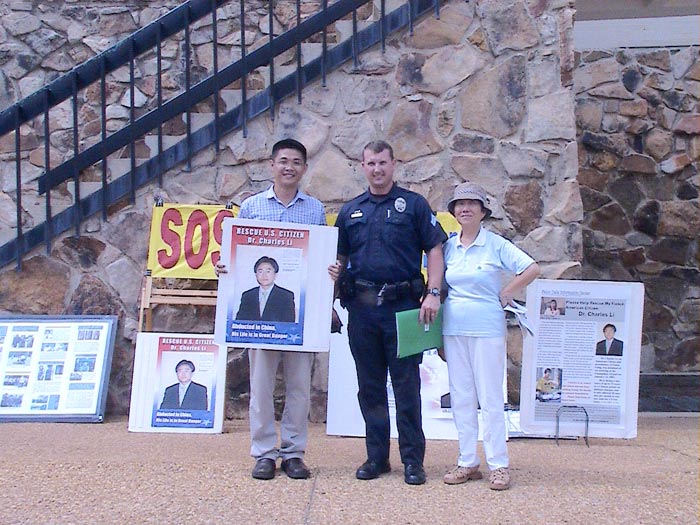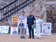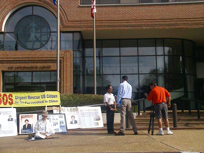 | 在Pensacola市政府前接受媒体采访 | 在Dothan市政府前接受媒体采访 | 明白真象的警官支持营救李祥春 |