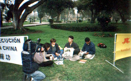 接待我们的是主管网页的记者,是个年轻小伙子。态度非常诚恳,当他看了中国大陆大法弟子受酷刑的图片时,听了我们讲的真象时大吃一惊,因为他不知道什么是法轮功(法轮大法)。他感到非常抱歉。他找来一位年轻人,介绍说是大报记者,希望我们详细再跟他讲一遍。我们从什么是法轮功,法轮功在中国开传至60个国家洪传,学炼法轮功人数达一亿讲起,接着我们以秘鲁法轮功学员向中国大使馆合法合理申请护照延期,而被中国大使馆无理注销护照的迫害罪证事实,讲述自1999年7月20日江氏集团在中国镇压法轮功以来,利用国家所有的工具对中国法轮功学员进行残酷镇压,同时利用媒体隐瞒事实,对法轮功进行歪曲事实,恶毒中伤。这种政治迫害已经从中国延伸至中国以外其他的国家。已经造成对各国民主利益的伤害。