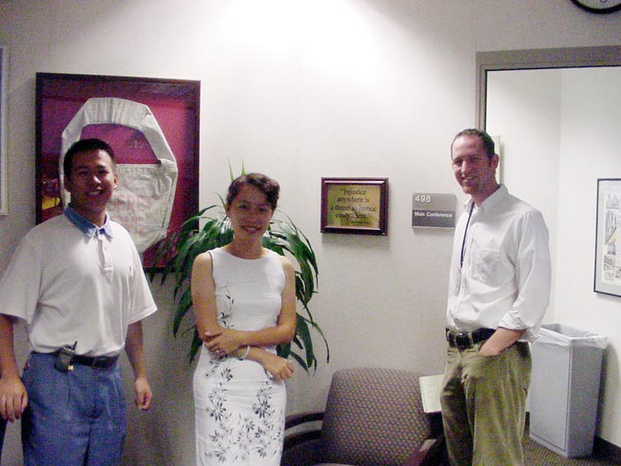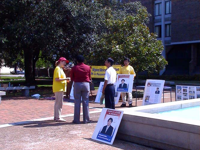 在杰克逊市,我们拜访了当地的参议员办公室、市政府和县政委员会,县政委员会的秘书非常支持我们的营救活动,她告诉我们说一位县政专员在市中心开有一家公司,让我们去那里找他。我们去了那家公司,虽然那位专员不在,但他公司的一位女士非常热心,她跟我们要了签名簿,然后说她要让公司的每个人都签,她也向职员派发了资料。