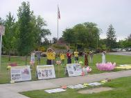 蒙缇高戈瑞市是阿拉巴马州的首府所在地。今天的新闻发布会得到了亚特兰大和伯明翰市学员的支持,他们开车长途跋涉赶来支援。我们在蒙缇高戈瑞市政府楼街对面的小公园摆好了横幅和展板。当地最大的报纸Montgomery Advertizer派记者来采访。在讲到美国公民查尔斯被中共抓捕并判刑时,学员们说独裁者江泽民为了维持对法轮功的迫害,从镇压的开始就制造了许多谎言来蒙蔽全中国和世界的人民。其中最为邪恶的就是制造“天安门自焚”事件来诬陷法轮功。虽然我们很多海外的人们都明白这是他们的谎言,但在中国大陆由于媒体都是被中共所控制,人们根本就不知道真实的情况,根本就不了解江XX正在用这么残酷的手段迫害信仰“真、善、忍”的百姓,查尔斯回中国就是想告诉中国人民真实的情况,不再受谎言的欺骗,以使得无辜的人们不再遭受这种痛苦。记者把学员讲的都记在她的记录本上了。