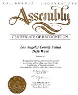 表彰洛杉矶县法轮大法周给洛杉矶中心带来了国际文化,通过法轮大法身心的修炼丰富了人们的生活;