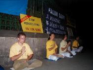 一位过路的女士向我们表示她的祝愿,她非常敬佩我们的勇气。有一名5岁的小弟子非常热心的散发传单。只要有人路过拐角,她就立刻跑过去,有礼貌地向行人打招呼,从那里经过的行人都拿了她给的资料,并报以善意的微笑。整个晚上都很祥和安静。很长时间以来,匈牙利的学员每周都在那里举行一次烛光守夜。