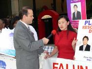 圣路易学员在采访时说:“我们的朋友李祥春是住在加州的一位医生,也是一名法轮功学员。今年1月22日在中国机场一下飞机即被捕,原因是他有去揭露中国法轮功学员所遭受的严重的人权的企图。在狱中他遭到折磨,毒打和洗脑。他在美国的朋友们正通过从加州到首府华盛顿的汽车旅行进行呼吁。紧急救援之旅将在星期三下午到达圣路易斯,我们希望人们伸出援手,一起帮助李祥春平安归来。”
