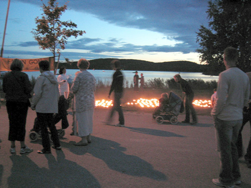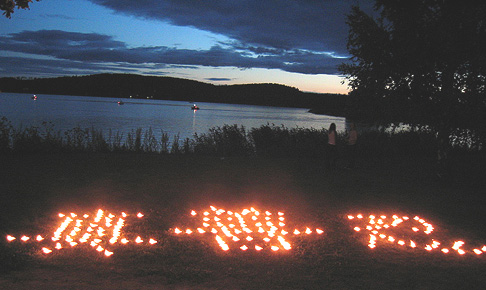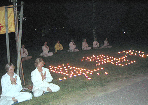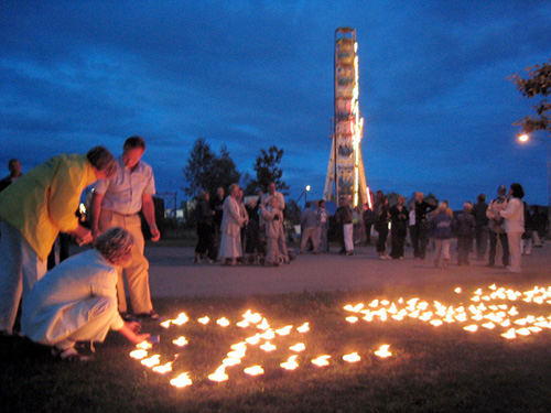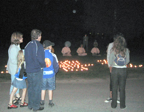8月16日星期六晚,爱尔维卡市政府免费向大法弟子们提供了150个大号烛光,以便学员可以为本次港口节组成“真善忍”三个大字。明亮的“真善忍”照亮了港口节,也照亮了人们的心。