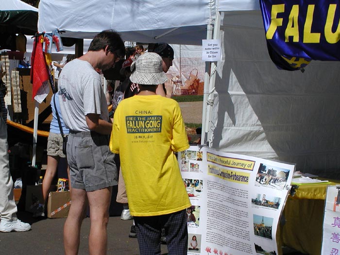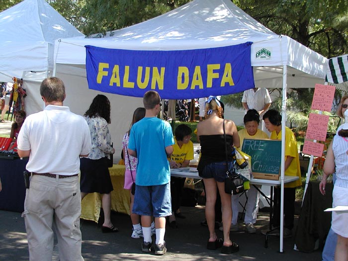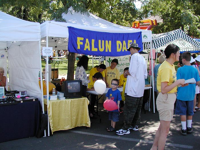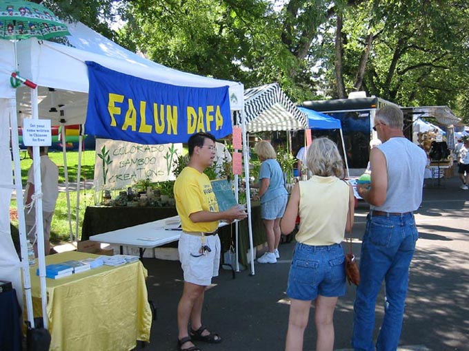 【明慧网2003年8月30日】八月十六日,科罗拉多州的大法弟子,参加了在夫特-考林(FORT COLLINS)举办的一年一次的“新西部”节,向当地民众介绍法轮大法和讲述法轮功在中国大陆遭受
