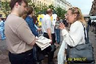 俄罗斯大法弟子在圣彼得堡市中心洪法、讲真象(图)
