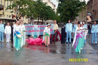 涅瓦大街上的中国舞蹈和法轮功真相(图)