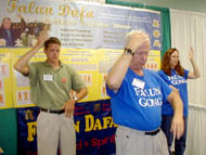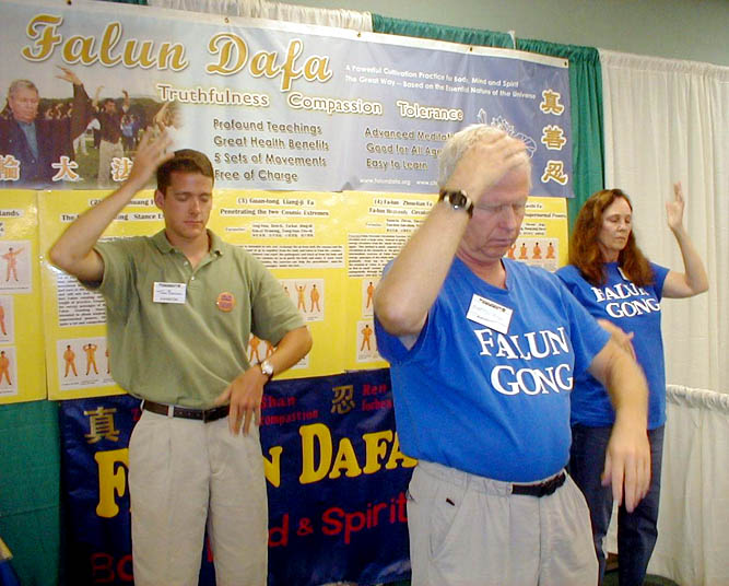 在两天的博览会期间,学员们几乎不间断地向人们演示着法轮功功法。很多人赞叹我们的功法非常有魅力,令人着迷。还有很多人表示想学功。数以百计的人们高兴地接受我们的传单,并询问关于法轮功的问题。还有一些人说他们发现原来他们参加这次博览会就是为了来学法轮功的。