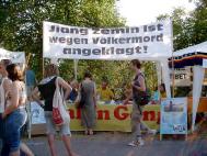 尽管文化节上乐声隆隆、游人众多,我们还是静静地炼功,向人们分发传单、为营救熊伟征集签名、和人们交谈。许多孩子对我们法轮功的中文VCD产生了兴趣。