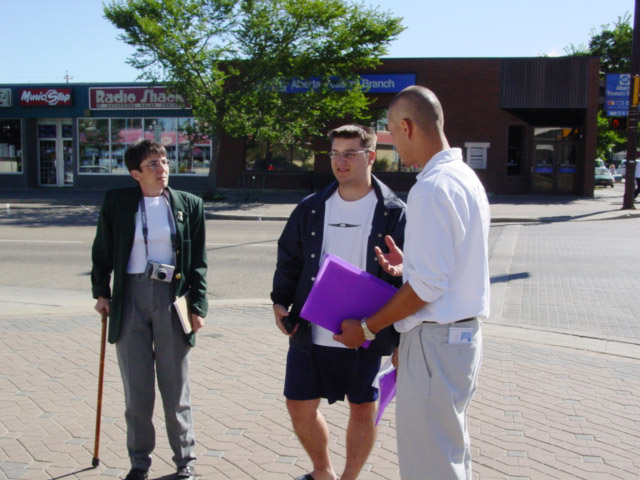 通过一周的锤炼和学法,我们在法上的认识越来越深了,讲真相越来越成熟了,做起事来也越来越顺利了。到了第八天(即24日),又是一个礼拜天,先前在Wetaksiwin和Red Deer没有见过的媒体今天都约到了,而且与媒体配合得很好,谈得非常融洽,非常成功。大家你一言我一句,讲的都非常到位。