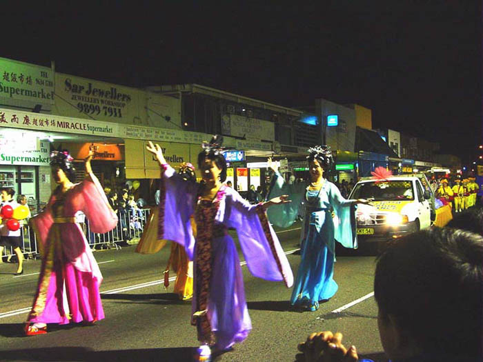 傍晚六点钟不少学员又来到宝琴山(Baulkham Hills)地区参加第二届桔子节大游行。有的学员连续参加三场洪法活动,依然是精神饱满,神采奕奕。