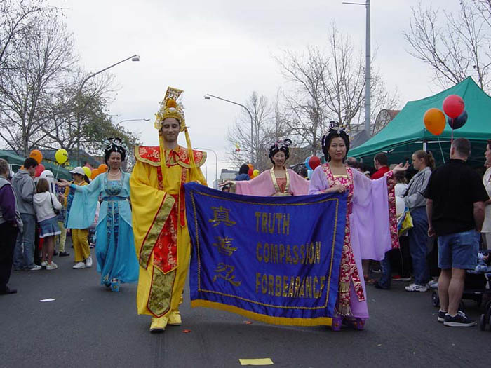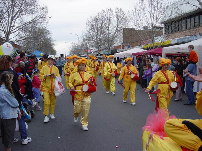 由于几年前这个地区的政府受到中国领事馆宣传的欺骗,对法轮功抱有一定的偏见。虽然允许我们参加游行,但是不允许我们沿途发大法的资料。在我们遵守政府的规定同时,把游行的质量搞好,让地区的政府和居民对我们有了很大的改观。今年地区政府主动提出为我们在游行中向十几万居民介绍法轮大法。当我们的队伍以整齐、独具一格的面貌出现在人们的眼前时,主持人从高音喇叭中发出宏亮的声音,向当地的居民介绍了法轮大法。大法学员同时在沿途散发了大量的大法资料。