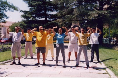 | 在塞格维亚市博物馆公园洪法炼功 | 几个天真可爱的西班牙儿童一直认真地跟随我们学功 |
