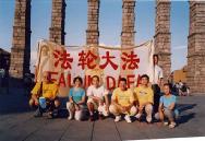 之后我们来到博物馆公园炼功。这里游客络绎不绝。我们把展板摆好,演示功法,以最纯正的心念洪扬大法,这里是塞格维亚的著名旅游景点,游人非常多,选择这里就是为了让更多的人有机会认识大法。