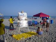 8月31号我们“营救车旅”的同修们来到了风景如画的威明顿(Wilmington)市海滨,开始了我们为期3天的东海岸行程。这一天正好是劳动节长周末,海滩上到处是如潮的度假人群。我们支起了我们的展板,向游人们分发真相材料,邀请人们为营救李祥春签名。很多知道了真相的游客对江泽民集团对法轮功的迫害都感到了非常的震惊,并寄予了同情。这一天我们收集到了很多签名。