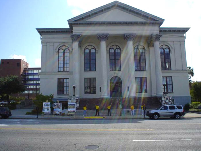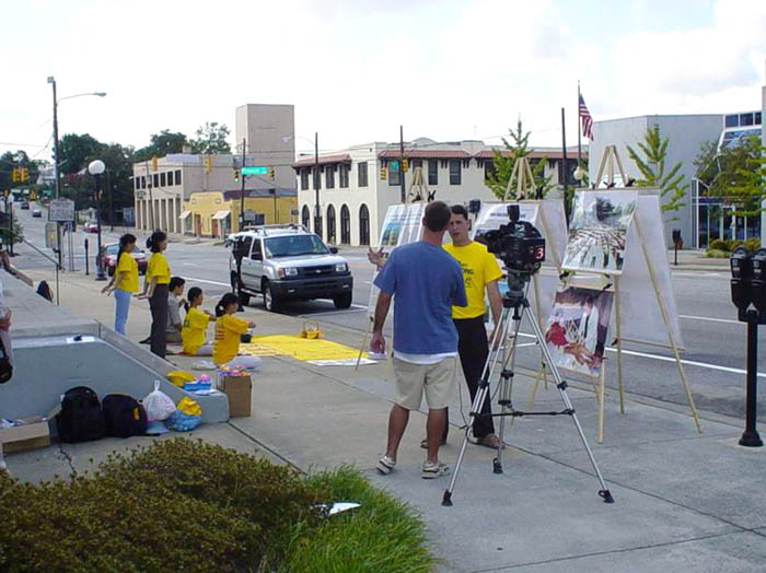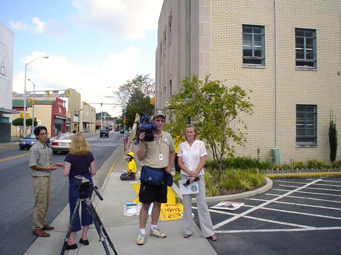 9月1号一早,我们在威明顿(Wilmington)市议会大厦前设置了小型真相图片展,并组织了新闻发布会。威明顿市的市长到场并讲话,他还在我们的请愿书上签了名。本地的电视台3台和6台都到场做了采访。