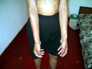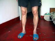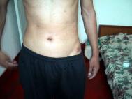 | 我的左侧髋骨处也是2001年9月那次留下的厚厚的疤痕 | 2001年至2002年折磨我时手铐勒加电棍电留下的疤痕。 | 是分局及市局2002年3月折磨我时留下的疤痕 |