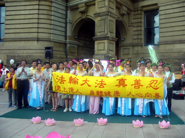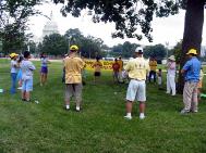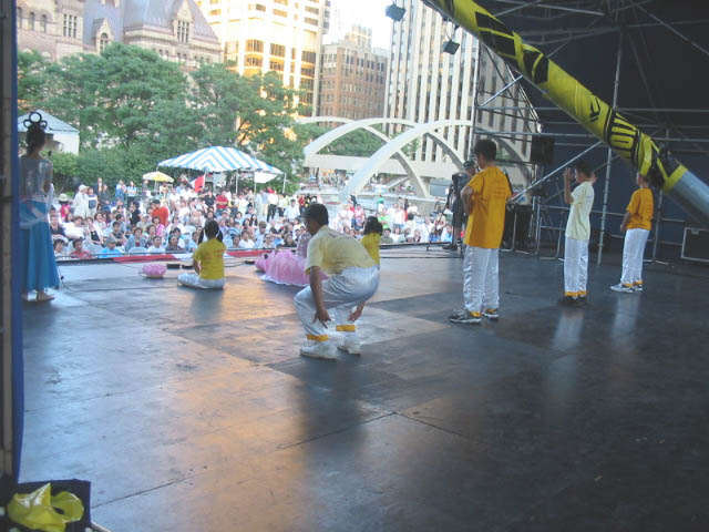 在暑假期间, 他们应邀参加了丽晶园的夏季社区联欢会, 表演了功法和舞蹈。