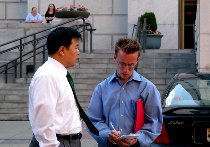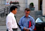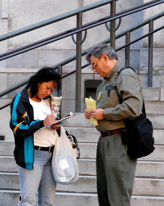 | 市长执行助理TONY EVANS发言支持法轮功 | 南泽西最大报纸Courier Post采访陈刚 | 市政大楼前人们纷纷签字呼吁中国释放李祥春 |