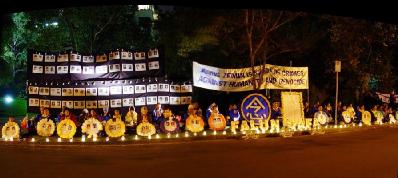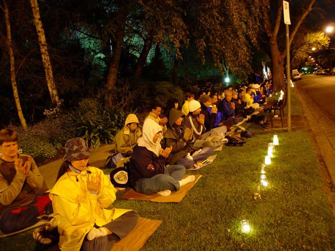 参加烛光守夜的还有从香港、印尼、台湾、新西兰、马来西亚等地赶来的弟子。队伍在中领馆前如长龙般一字排开,在庄严肃穆的气氛中进行了连续正点发正念,以强大的正念之场清除另外空间残余的邪恶。壮观的队伍吸引了很多过往车辆,尽管中领馆前的烛光守夜对墨尔本居民已不陌生,但很多车辆还是按响了喇叭表示支持和问候。